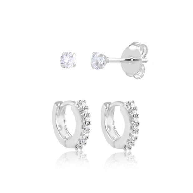 Luna & Light Set – Earring Set Sterling silver 925 set featuring sparkling cubic zirconia huggie hoops and classic stud earrings. A versatile duo that transitions effortlessly from everyday wear to special occasions.