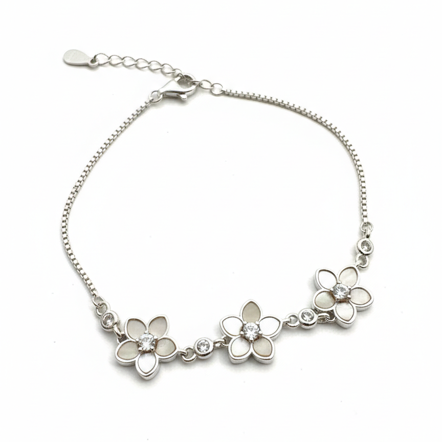 the finest bracelet with mother-of-pearl in each petal to detail how elegant you can be.